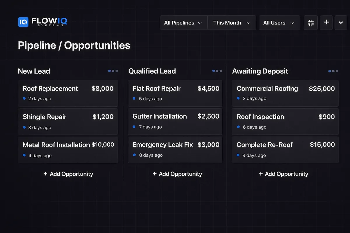 Contractors get more booked jobs from the same ad spend using FlowIQ systems.
